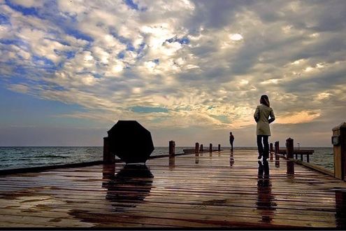 yağmurlu bir havada sahilde ayrılık resimi