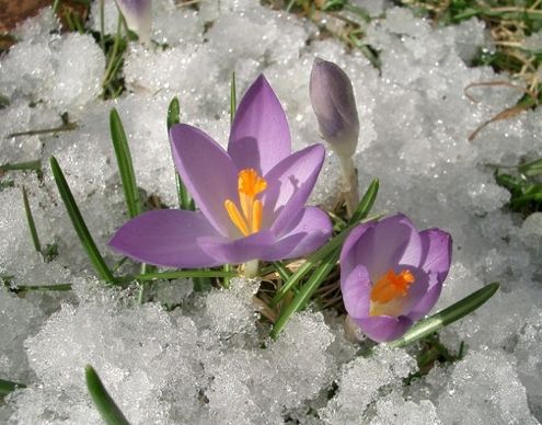 harika bir görünümlü kar içinde çiğdem çiçeği