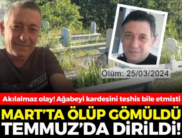 Erol T. alkol zehirlenmesi yaşayınca hastaneye kaldırıldı. Bir süre sonra taburcu olan Erol T.’nin ağabeyine ‘Kardeşiniz öl*dü, gelin teşhis edin’ diye haber geldi. Ağabey, yüzü tanınmayacak haldeki kişiyi kardeşi olarak teşhis etti. Aksaray’da cenaze yapıldı. Ancak 4 ay sonra akılalmaz bir olay yaşandı.