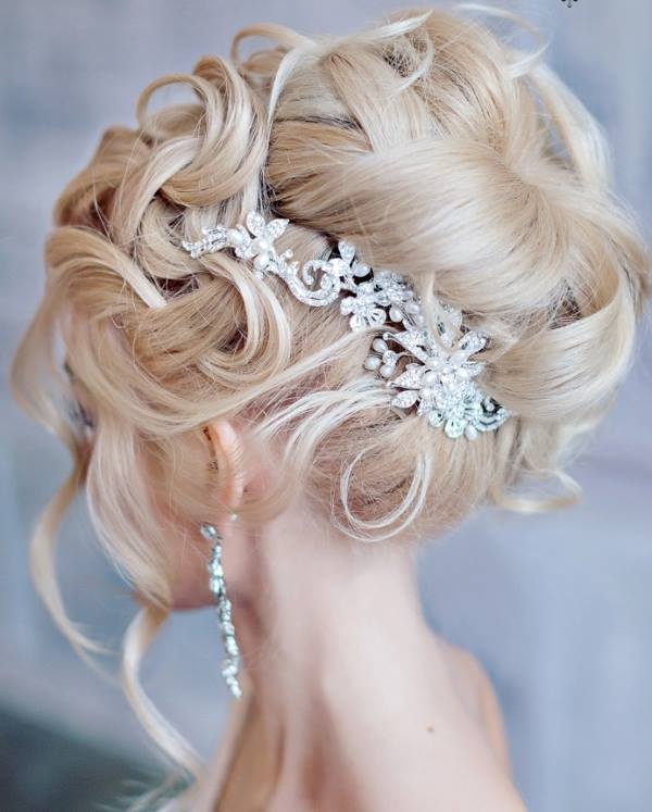 zarif taşlı aksesuarlarla süslenmiş gelin saçları