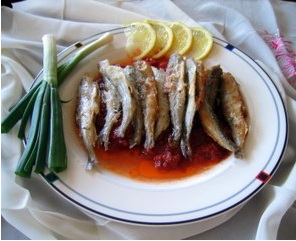 Yumurtaları bir kapta çatalla akı sarısı birbirine karışacak kadar çarpınız. Sonra balıkları bu karışıma bulayarak, bir tavada hafifçe kızdırılmış zeytinyağına, tavamrı aldığı kadar atınız. Maşa ile çevirerek kızartıp içine kâğıt yayılmış bir kaba çıkarınız. Tabağa aldığınızda maydanoz dallarıyla süsleyerek çevresine 4 er parçaya bölünmüş limon koyunuz.