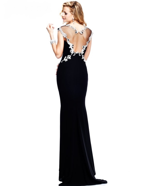 siyah ilşemeli abiye elbise arkadan görünüm