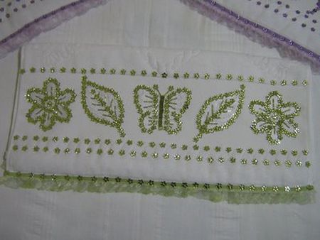 yeşil pularla işleme yaprak ve kelebek modeli ile havlu