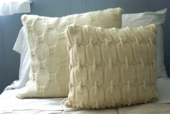 krem örgü yastıklar