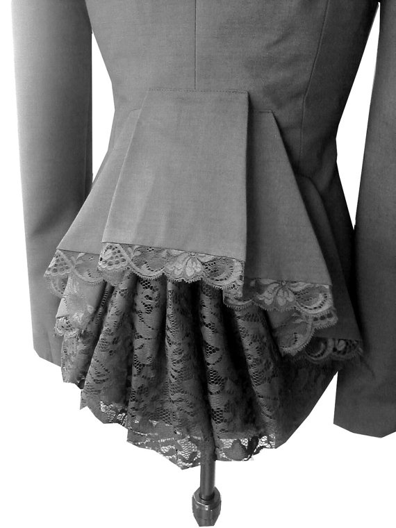 gri dantel detaylı ceket modeli