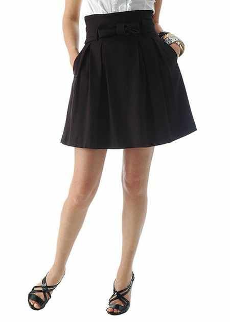 fiyonklu keten siyah etek modeli