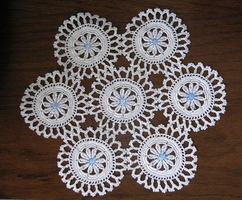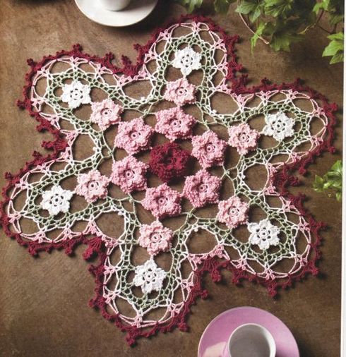 rengrenk iple işlenmiş sehpa örtüsü